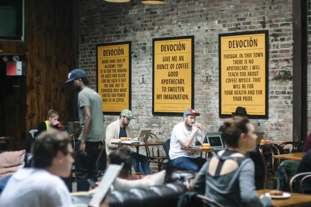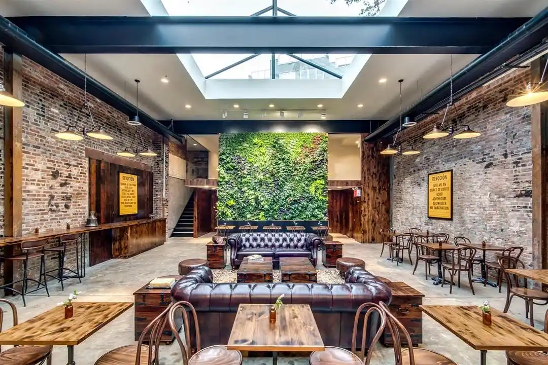 Nếu bạn đang tìm một quán cà phê rộng lớn, hoài cổ ngay tại quận Brooklyn, thành phố New York, hãy nhớ đến Devoción. Khi bước vào bên trong Devoción, bạn sẽ ngay lập tức bị thu hút bởi trần nhà cao, những bức tường gạch cổ kính, xung quanh được bao phủ bởi cây xanh và không gian ngập tràn ánh sáng tự nhiên. Điểm cộng lớn của Devoción là nét hiện đại pha lẫn cổ điển vô cùng sang trọng, cho quý khách cảm thấy yên bình như bước vào khu vườn đầy cây xanh giữa đô thị.