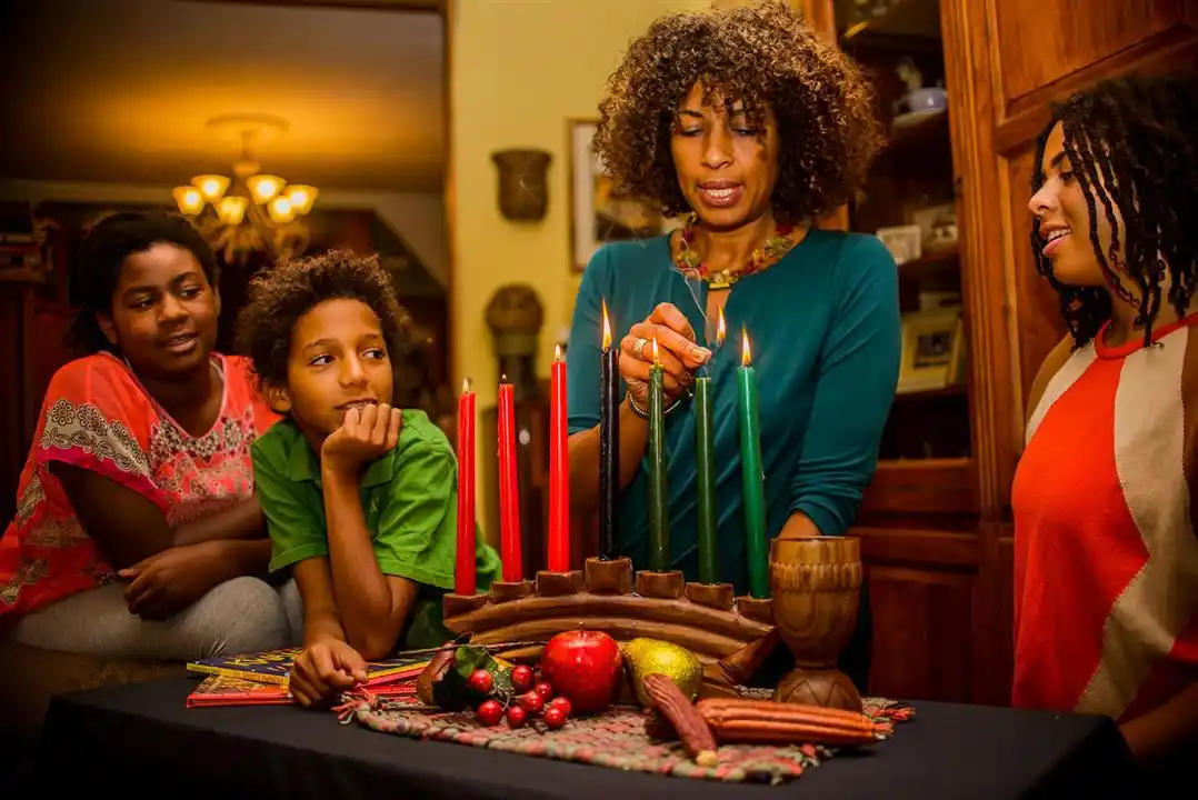 Được tổ chức từ ngày 26 tháng 12 đến ngày 1 tháng 1, Kwanzaa là lễ hội của cộng đồng người Mỹ gốc Phi nhằm tôn vinh di sản văn hóa và truyền thống châu Phi. Các gia đình thường thắp sáng bảy ngọn nến biểu tượng, tham gia các buổi biểu diễn nghệ thuật, và chia sẻ bữa ăn sum họp.